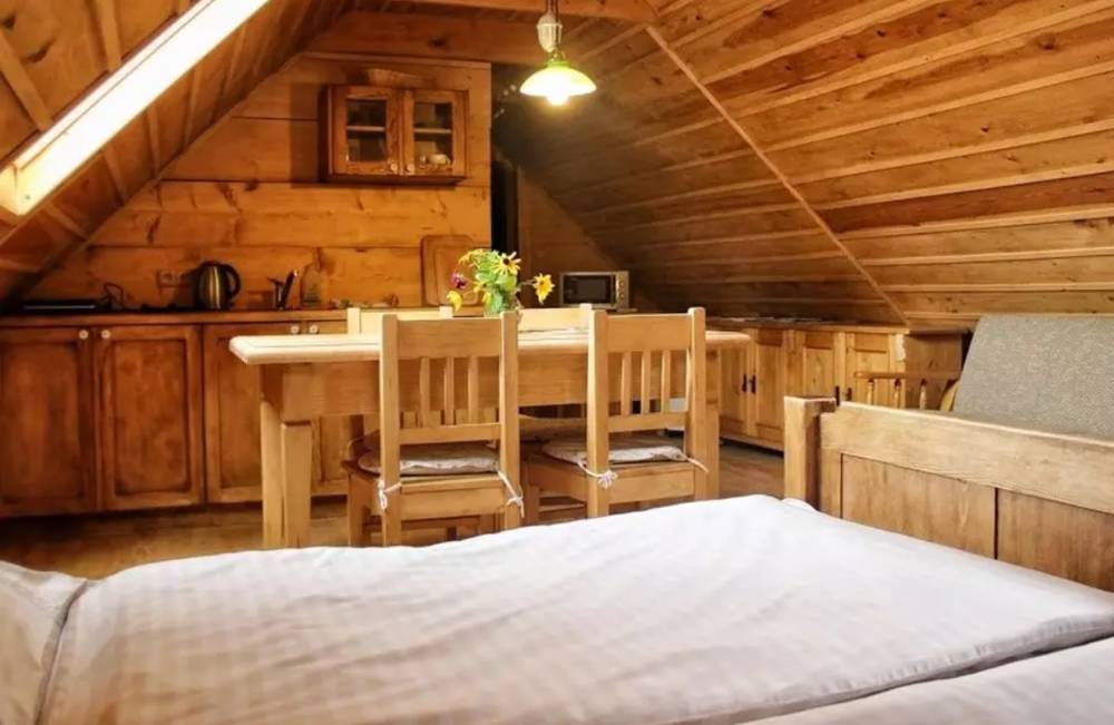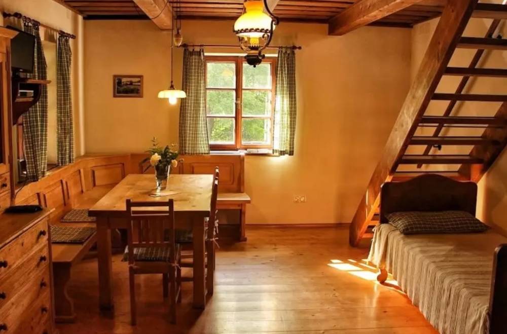 Apartmá Karolínka, které nese jméno dcery majitelů, je ideální pro romantické pobyty ve dvou, ale poskytne ubytování až pěti osobám. Je vystavěné z přírodních materiálů a vybaveno v tradičním venkovském stylu.