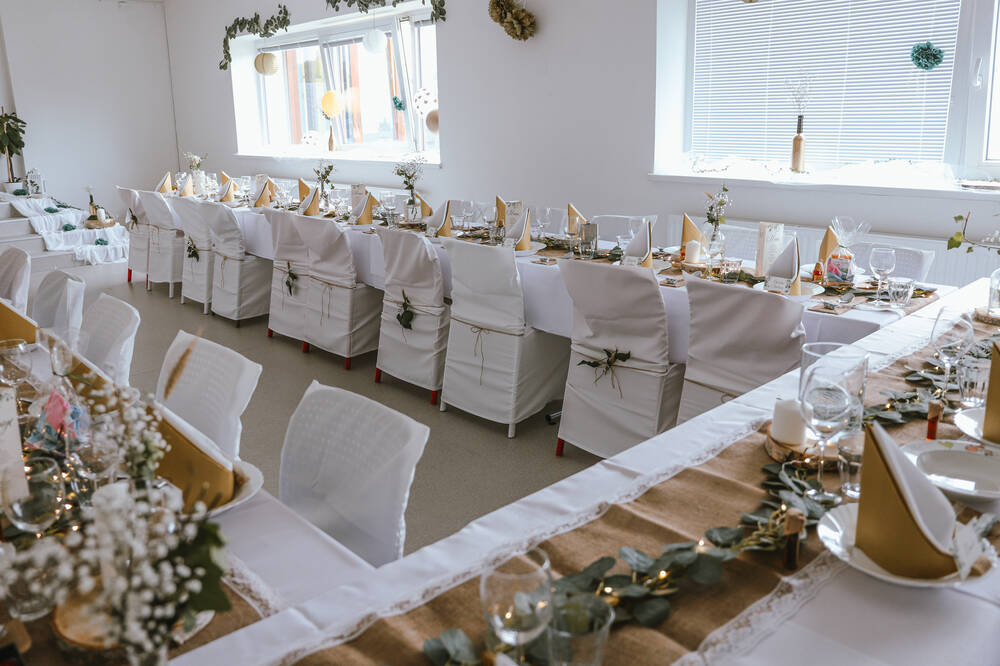 Rádi vám zapůjčíme slavobránu, party vybavení, jídelní servis a pomůžeme doladit detaily vaší svatby na míru.