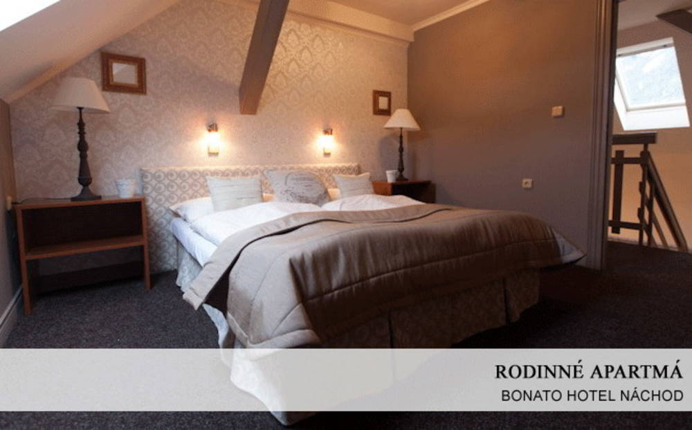 BONATO HOTEL Náchod se nachází v lázeňské zóně na okraji Náchoda při hlavní tranzitní trase do Polska. Poloha hotelu, ubytování a společenské prostory, stejně jako dostupnost mnoha přírodních krás a pamětihodností východních Čech, je zajímavá jak pro obchodníky a firmy, tak pro skupinovou i rodinnou rekreaci.