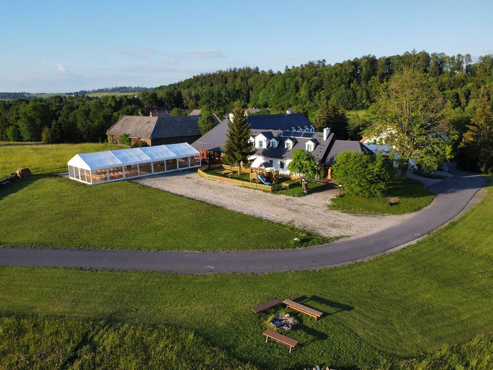 Místo pro Vaši svatbu, oslavu či sportovní soustředění. Party stan až pro 100 lidí bez omezení času konce párty, zimní zahrada s vnitřním max grillem na prasátko. Společenská místnost s kachlovými kamny až pro 40 osob. Sklípek. Aktivity za každého počasí v létě i v zimě. Možnost stanování v sadu. 45 lůžek, sauna, masérna.