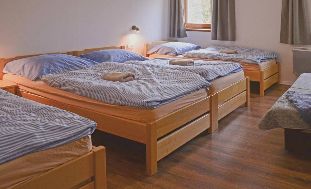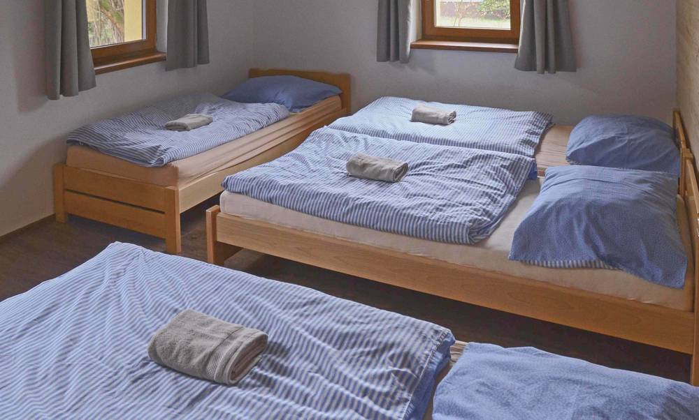 Ložnice a pokoje: objekt poskytuje 19 lůžek a 1 přistýlku v několika velikostně odlišných pokojích: 3x třílužkový (v jednom je možná přistýlka), 1x dvoulůžkový a 2x čtyřlůžkový pokoj. K dispozici jsou dvě dětské postýlky. Pro vyšší spánkový komfort jsou v každém pokoji zatmívací závěsy a síť proti hmyzu. Ložní prádlo i ručníky jsou v ceně.