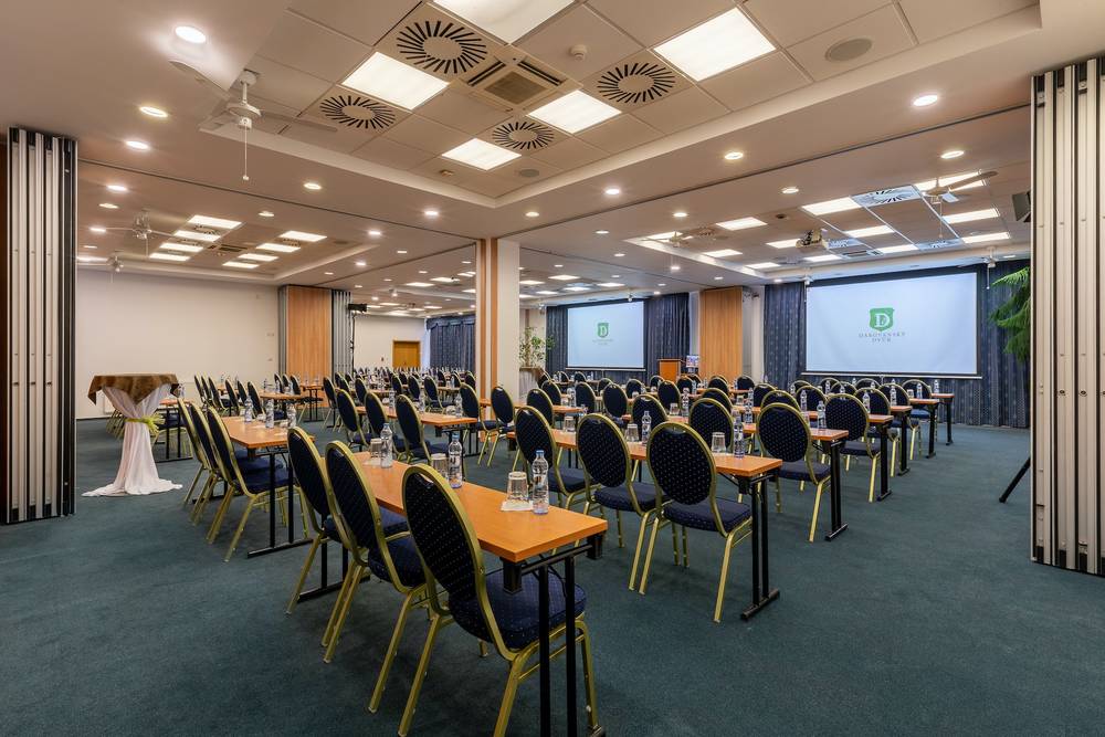 Multifunkční sál je zcela oddělen od hlavní budovy hotelu a kongresového sálu. Tím, že pokoje jsou umístěny ve 4 budovách, je zajištěno soukromí a klid pro účastníky jiných relaxačních akcí. V budově, kde je umístěn multifunkční sál, je k dispozici 11 pokojů s 25 lůžky, takže pro menší akce mohou mít účastníci budovu jen pro sebe.
