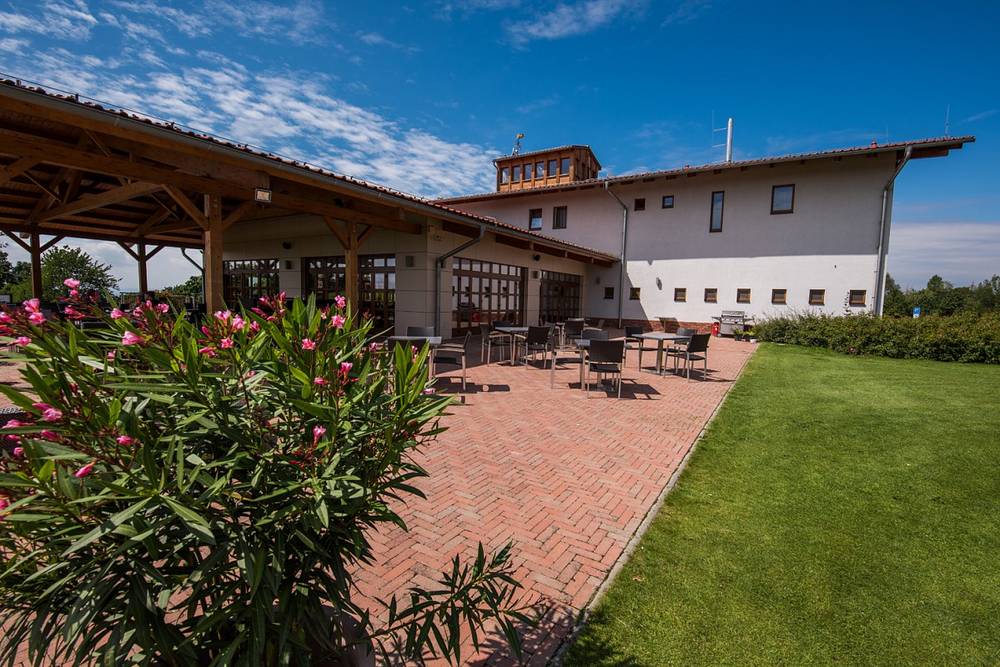 Můžete se usadit na terasu s výhledem na celou Hanou a metropoli Olomouc nebo relaxovat na terase s výhledem na golfové hřiště a krásný poloostrovní osmnáctý grín.