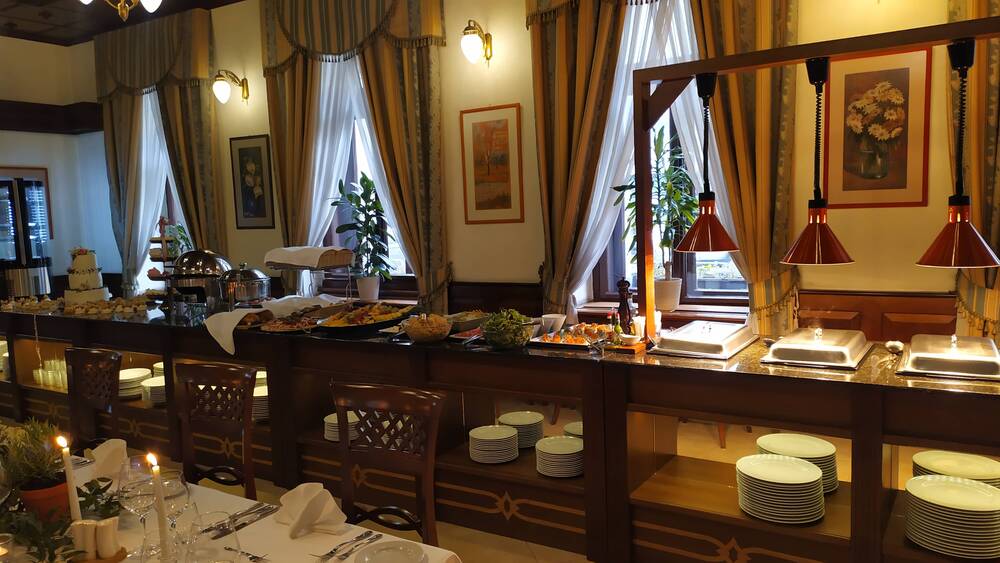 Občerstvení je podáváno formou Švédských stolů, které obsluhují naši profesionální kuchaři. Hosté korzují ve volném prostoru s možností