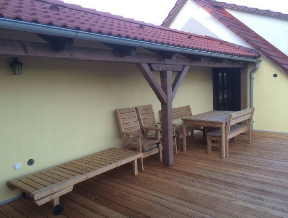 Společenská místnost – k dispozici plně vybavená kuchyň, televize, DVD, Playstation3, koupelna, WC, prostorná částečně zastřešená venkovní terasa (venkovní masivní nábytek – stůl, židle, křesla, lehátka)