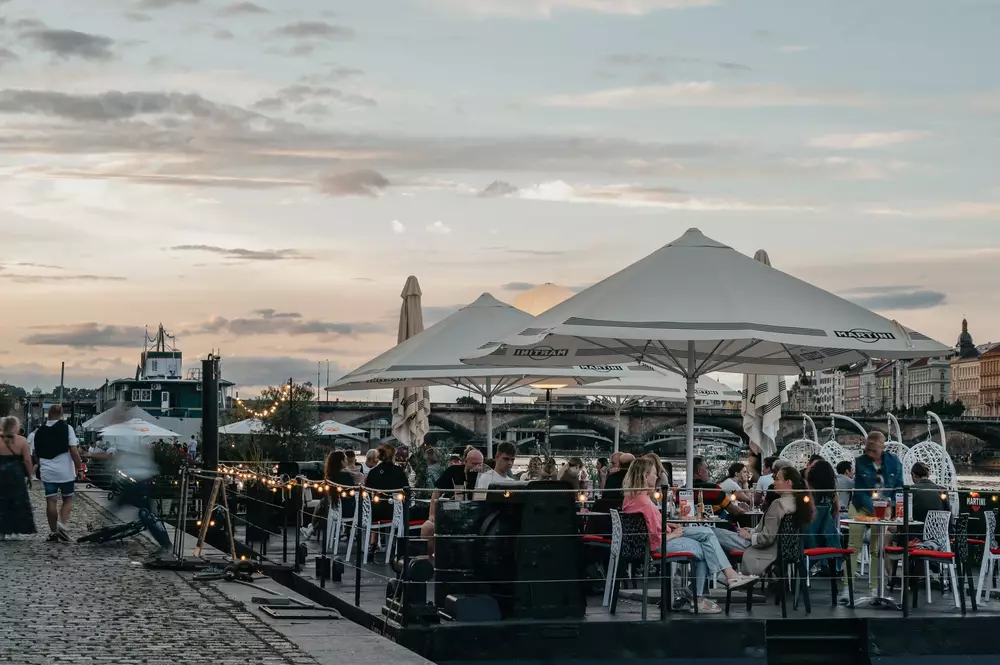V letních měsících můžete využít zahradní terasu s kapacitou 60 míst, venkovní bar, gril a ponton na vodě, který pojme až 100 osob. Tento prostor je ideální pro BBQ akce, koktejlové večery nebo neformální networking. Celý areál tak během sezóny nabízí až 230 míst k sezení.