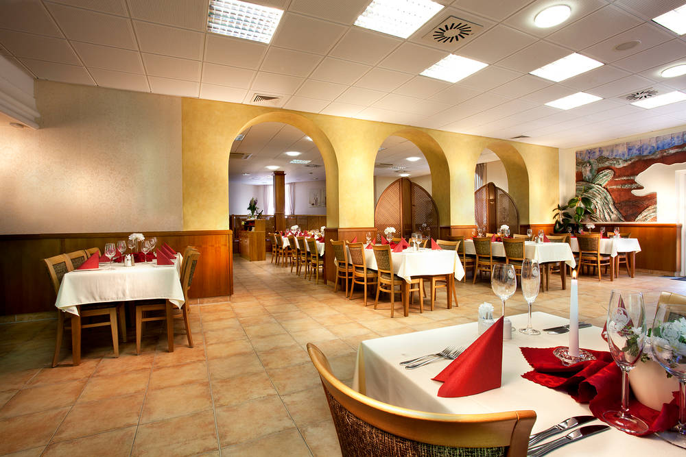 Restaurace s kapacitou 120 míst s krásným výhledem na kolem hotelu protékající řeku Bystřici a přátelskou atmosférou vybízí k nerušnému posezení u vína z našich vinic nebo k ochutnávce moderně upravených krajových specialit.