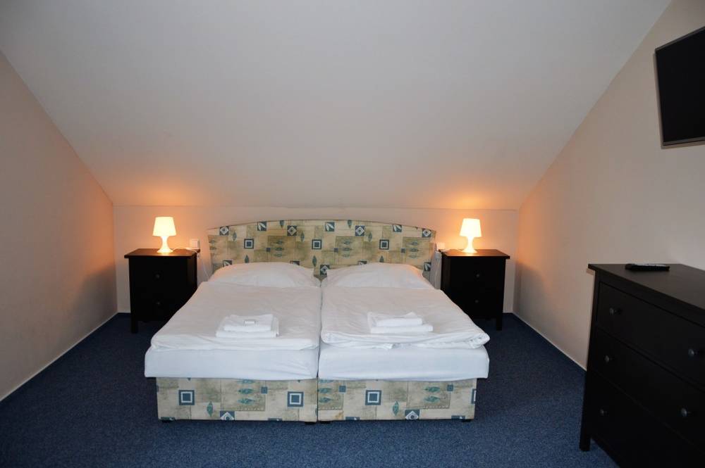 Nabízíme 11 útulných podkrovních pokojů s celkovou kapacitou 28 lůžek. Všechny pokoje jsou po celkové rekonstrukci. Součástí každého pokoje je vlastní sociální zařízení se sprchou a WC.