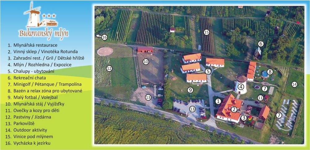 Zážitková areál Hotel Bukovanský mlýn*** je postaven na vrcholu kopce mezi obcemi Bukovany a Ostrovánky u Kyjova v centru Slovácka. Větrný mlýn postavený v r. 2004 byl v r. 2007 doplněn o stylový hotelový areál s atraktivní nabídkou pro firmy, zájezdy i individuální turisty.