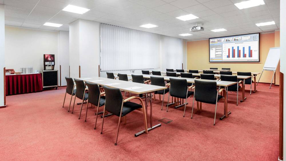 Je umístěna v klidné části prvního patra hotelu, a pohodlně se k ní dopravíte výtahem. K dispozici je klimatizace, kvalitní internetové připojení, promítací plátno s projektorem, a místem pro coffee breaky.