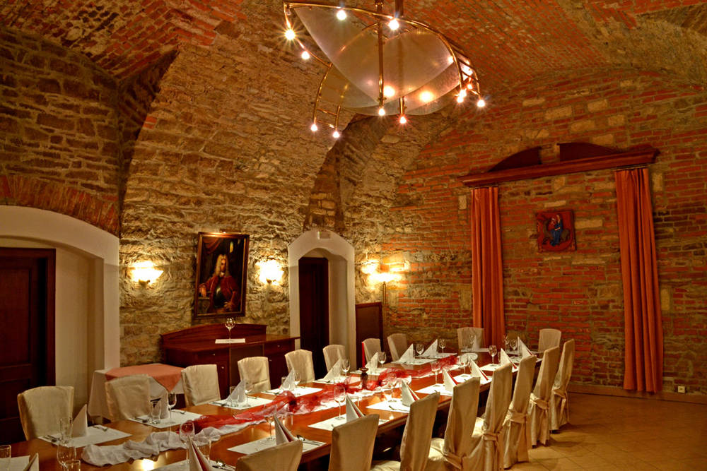 Hodovní síň – je unikátní historický prostor v hotelových sklepích, kapacita max. 50 osob, podle způsobu uspořádání stolů a zasedacího pořádku. Celému prostoru dominuje velký oválný dubový stůl. Prostor je vhodný pro pořádání svatebních hostin, třídních srazů, rodinných oslav nebo firemních akcí. Součástí sklepních prostor je i vinárna, kterou lze během akcí rovněž využít, jako prostor k tanci.