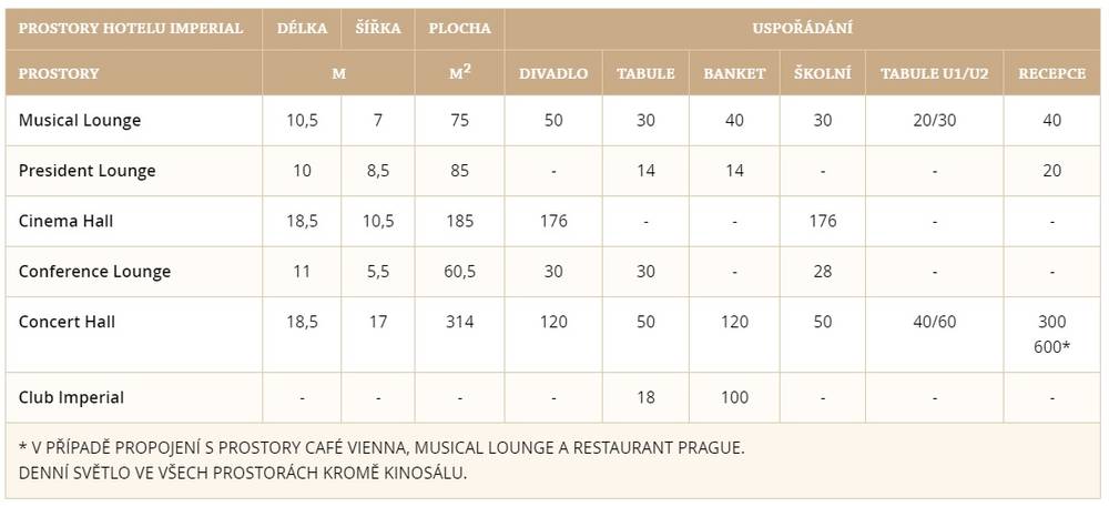 Hotel Imperial disponuje kromě velké ubytovací kapacity a komplexní nabídky lázeňských služeb také moderním konferenčním zázemím. Lze tu uspořádat malé, střední i větší akce. Díky portfoliu služeb může hotel Imperial hostit i akce mezinárodního významu. Součástí zákaznického servisu je i pronájem moderní techniky a další doplňkové služby.