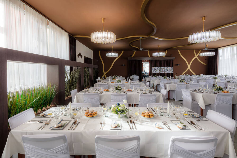 Nejvyhledávanějším místem pro svatební hostinu je naše restaurace Panorama. S kapacitou 110 míst a úchvatnými výhledy si užijete nezapomenutelné chvíle v kruhu rodiny a přátel. Sousední terasa s kapacitou pro dalších 80 hostů vytvoří jedinečnou atmosféru pro všechny příchozí. Pokud plánujete větší oslavu, náš Lázeňský sál, který pojme až 150 osob, je ideálním místem pro vaši velkolepou svatbu.