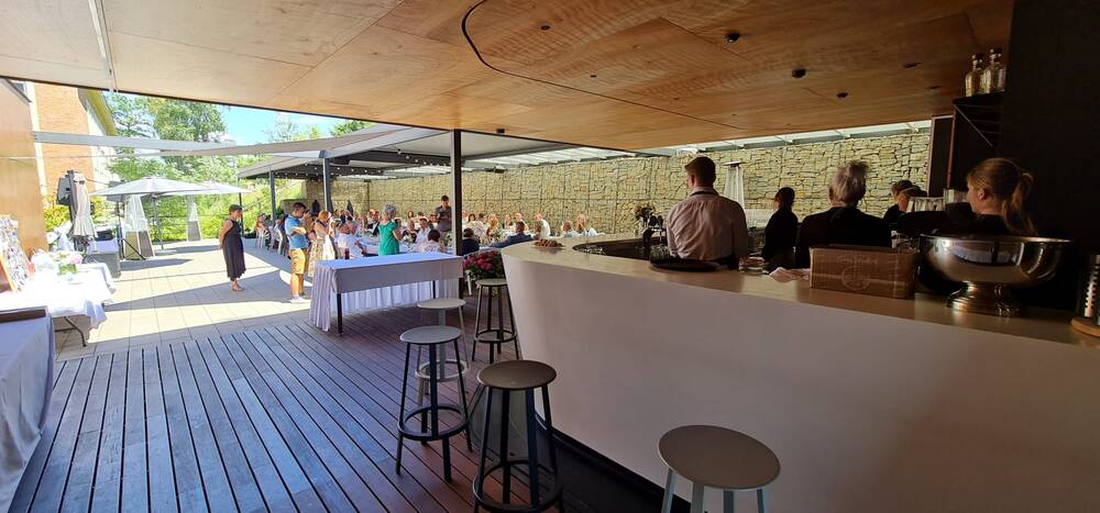 Pak jste ho našli u nás na Tomášově. Naše prostorná letní terasa nabízí ideální místo pro váš svatební den, a to včetně romantického prvního tance uprostřed přírody. Hotelový park s vodní fontánou poskytuje kouzelnou atmosféru pro chvíli, kdy si konečně řeknete své "ano". K dispozici vám bude také relaxační zóna se zavěšenými houpacími sítěmi a ratanovými lehátky. V případě ukaboněného počasí můžete pro svoji veselku využít krásné prostředí naší restaurace Tomášov a útulného salonku či foyer.