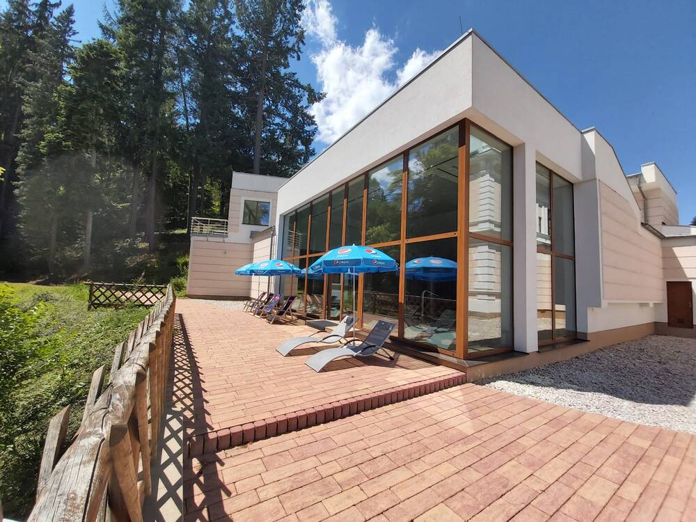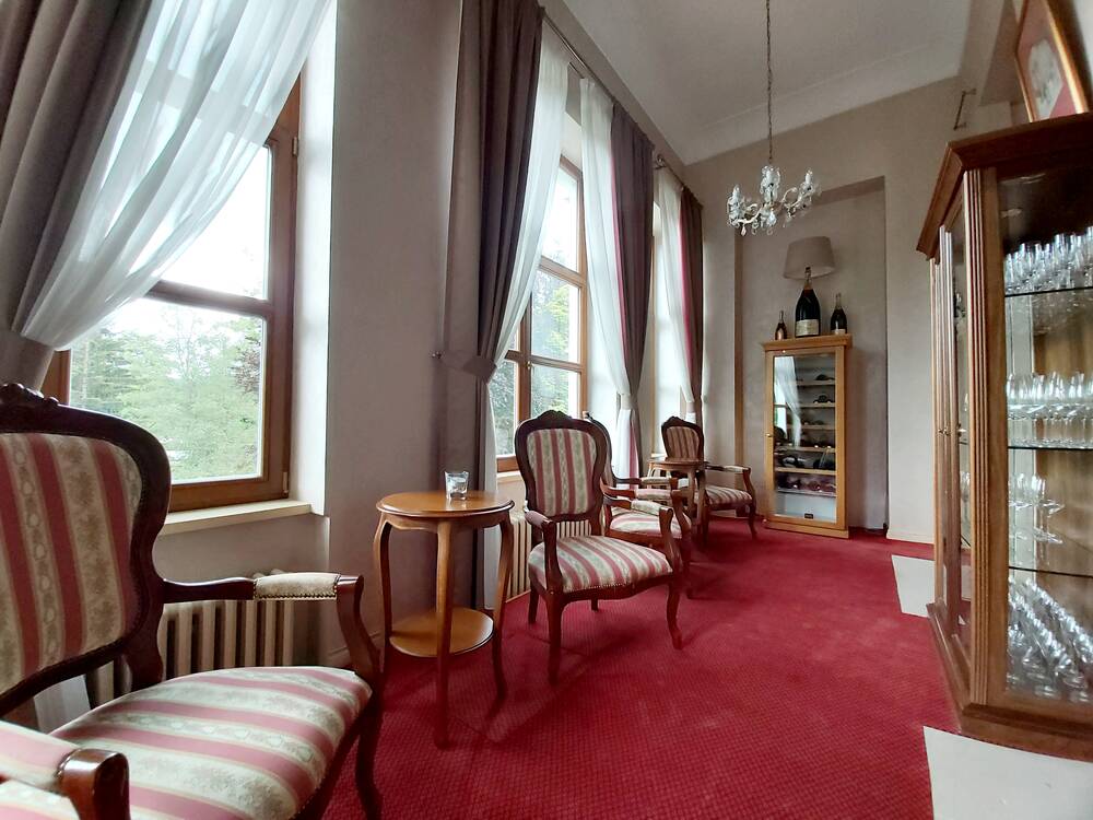 Hotel U Zámečku*** je součástí hotelového komplexu Château Cihelny****Art Royal Spa Hotel v prostoru vlastní rozlehlé zámecké zahrady, v ekologicky čistém prostředí Chráněné krajinné oblasti Slavkovský les. K dispozici má celkem 10 pokojů • Check-in probíhá v recepci Château Cihelny a snídaně v Zámecké restauraci. Vzdálenost mezi budovami je 25 m. Spojte svůj pobyt s odpočinkem a relaxací v moderním wellness centru Chateau Cihelny**** (vzdálenost 25 m) • K dispozici Vám bude nádherný vnitřní bazén s masážními vodopády a protiproudem (14×8 m) a s krásným výhledem do přírody, dále whirlpool, Kneippova lázeň, tři různé typy saun (finská, solná a parní) a také dobře vybavená posilovna s panoramatickým výhledem do zámeckého parku • Neopomeňte si dopřát některou z našich relaxačních a regeneračních masáží • Vstup do wellness centra je pro hosty Hotelu U Zámečku*** zpoplatněn jednorázovým celodenním vstupným ve výši 490 CZK za osobu.
