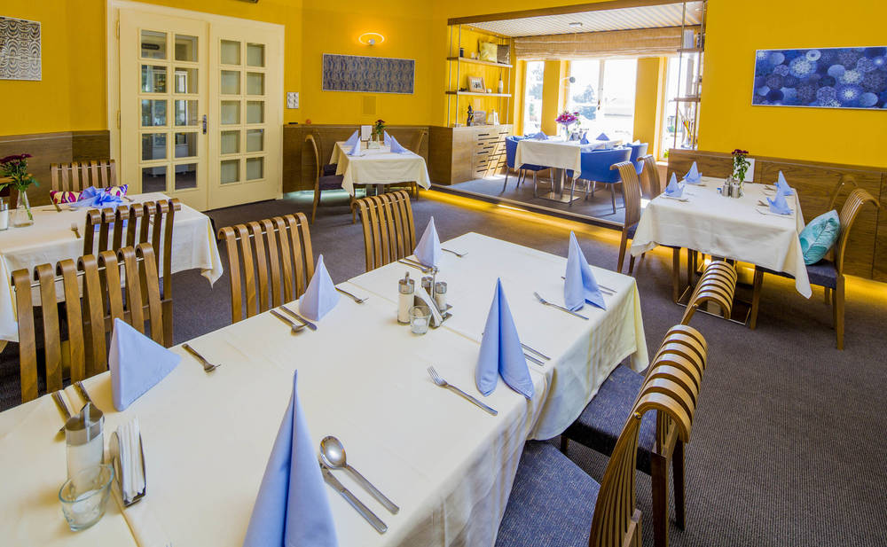 Stylová restaurace s vyhlášenou gastronomií zaměřená na české a mezinárodní speciality nadchne i ty nejnáročnější gurmány. Posedět můžete v prostorné nekuřácké restauraci, v útulné kavárně, které dominuje hravost barev a lehký interiér nebo v historickém salonku s krbem a komorní atmosférou. V letních měsících si můžete vychutnat speciality našich kuchařů na letní terase s výhledem do rozlehlých zahrad a na historické centrum Broumova nebo ve vyhřívaném zahradním altánku s grilem.
