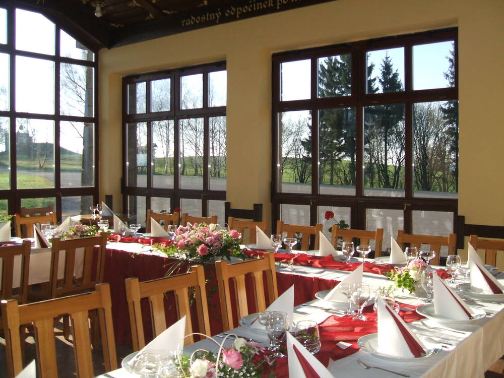 Příjemně posedět si můžete v restauraci (až 60 míst), v klubovně ( do 60 osob) a v zeleném salonku (max 20 míst). Prostory jsou vhodné pro pořádání rodinných oslav, svateb, podnikatelských a volnočasových seminářů, firemních schůzek a podobně. Stravování je zde poskytováno po celý den. Jídelní lístek nabízí široký výběr specialit, ale i cenově dostupná tradiční česká jídla. Naši kuchaři jsou připraveni vyhovět požadavkům na pokrmy dietní i bezlepkové zejména při pobytu mateřských a základních škol.