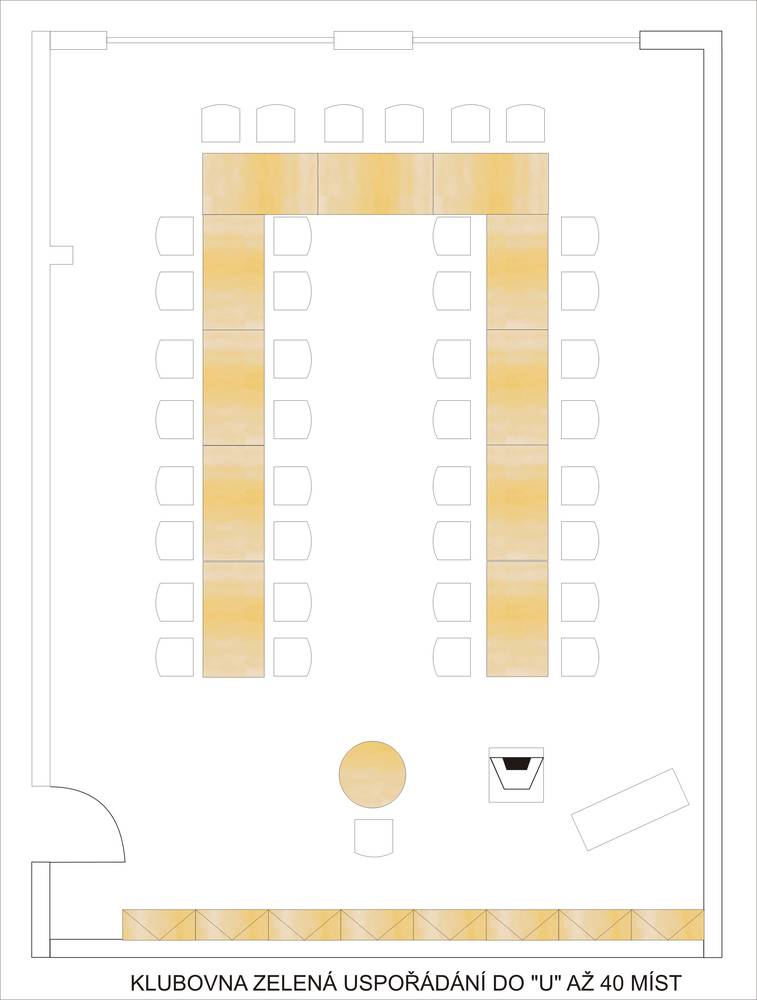 - 60 míst ve stolové tabuli do „U“