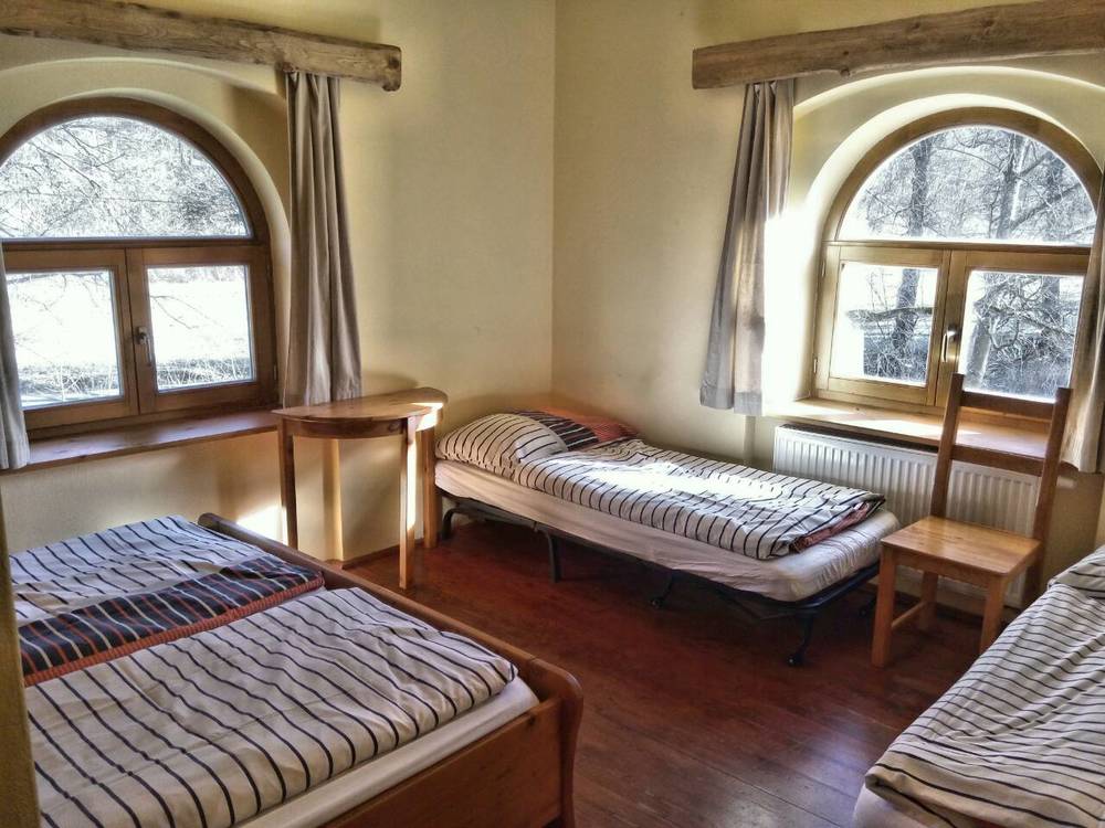 Ubytujeme vás v areálu bývalého pivovaru. Ve dvou budovách je možno ubytovat až 80 účastníků v pokojích pro 2, 3 nebo 4 osoby. Každý pokoj má vlastní sprchu a WC. Zahrady jsou upravené pro práci se skupinami, najdete tu potok s nízkou lanovou prolézačkou, trampolínu, ping-pong a “hobití” domek plný starých lidových her. Nocující skupiny mohou ZDARMA využít "hobití" domek, teambuildingovou zahradu a keltský orientační běh. Stravování pro vícedenní skupiny zajistíme dle dohody.