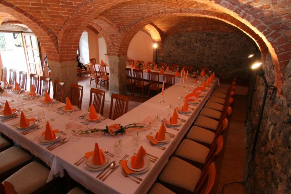 V naší nově zařízené starobylé vinárně s velkým kozubem si kromě vína pochutnáte na grilovaném selátku a dalších specialitách.