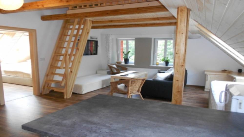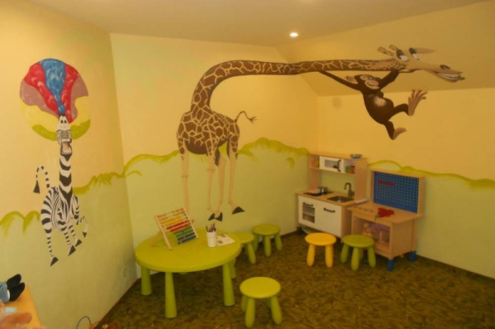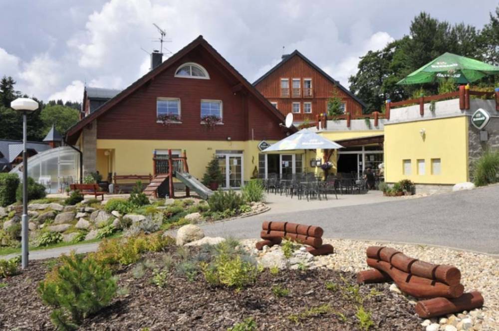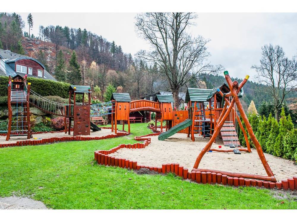 Na zahradě penzionu, Bedřichov, Jizesrké hory, je prostorné dětské hřiště s houpačkami a klouzačkami, umístěné na velké pískové ploše. Nejnovější zahradní úpravou pro děti je lanový most, který spojuje terasu s trampolínou a dětské hřiště.