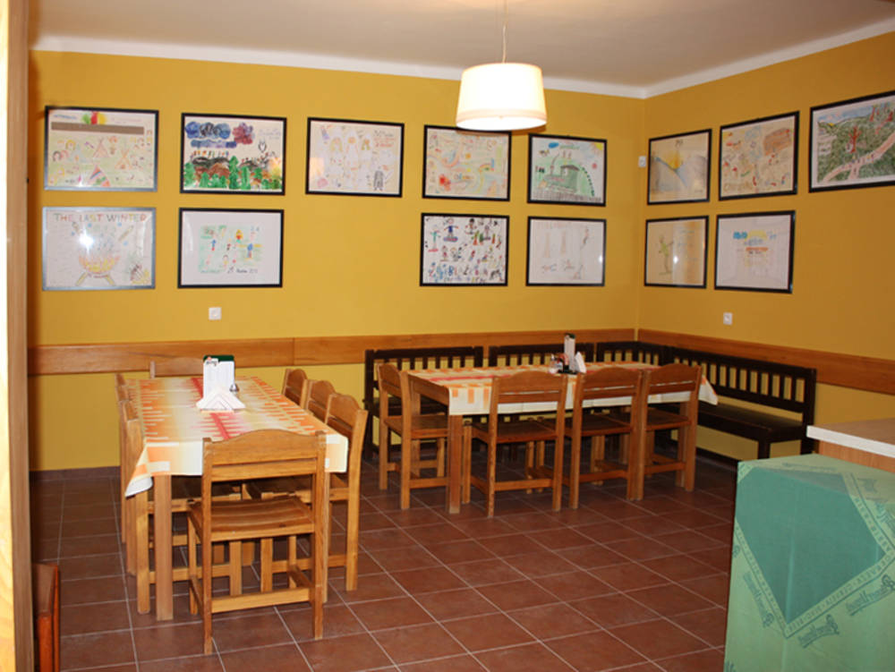Jídelnu penzionu tvoří tři velké vzájemně propojené místnosti s barem a kuchyní o celkové kapacitě 70 míst.