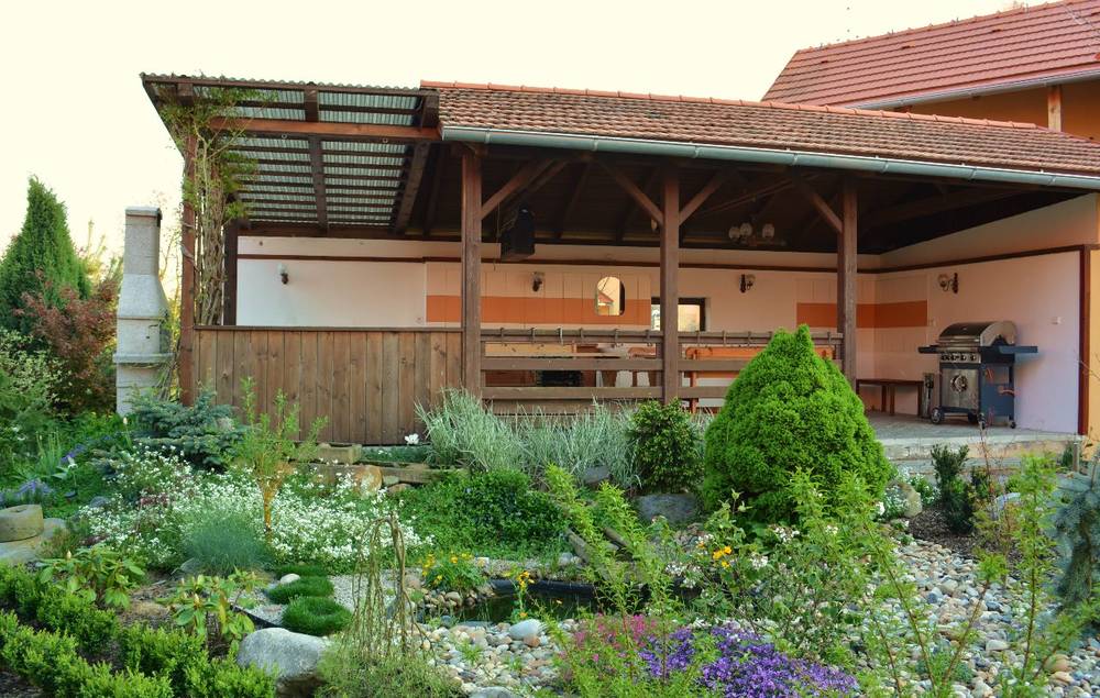 - zastřešené posezení se zahradním krbem a grilem