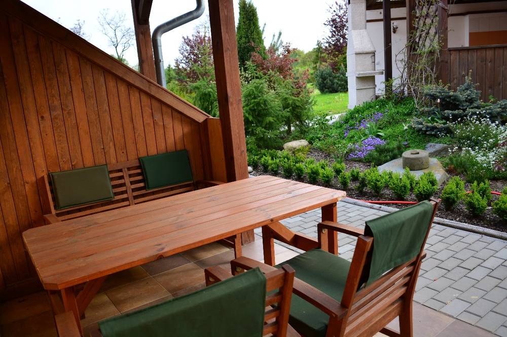- venkovní zastřešené relaxační posezení u bazénu