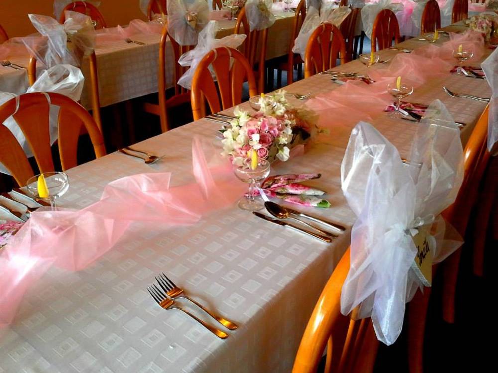 V rámci svatebního servisu pro vás připravíme nejen svatební hostinu a celodenní oslavy, ale zařídíme i výzdobu svatební tabule a celého objektu, doporučíme osvědčené kadeřnické a kosmetické služby, fotografa, živou hudbu, vybereme svatební dort a zákusky a domluvíme obřad přímo u nás v zahradě zámečku! Samozřejmostí je uzavření celého objektu pouze pro Vás na celý den svatby.