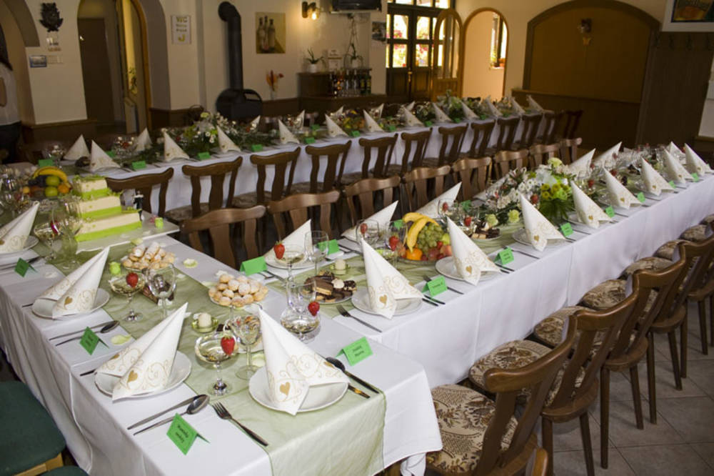 V prostorách restaurace ( 50 míst ) a salonku ( 25 míst) uskutečňujeme semináře, firemní školení, předváděcí akce, svatby,
