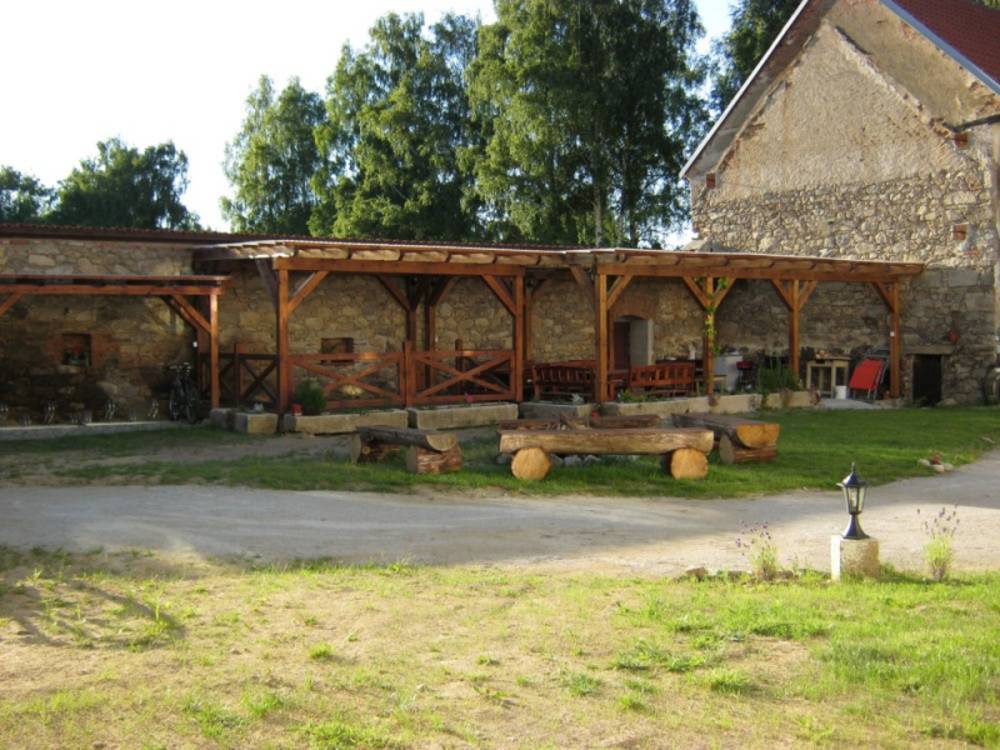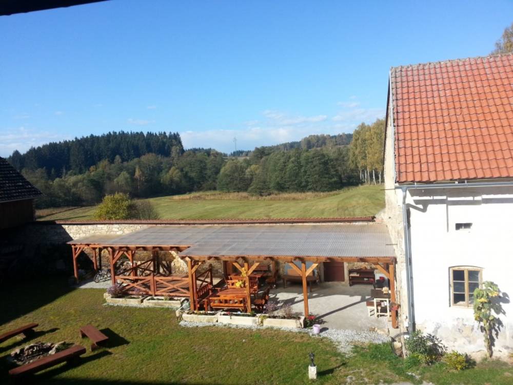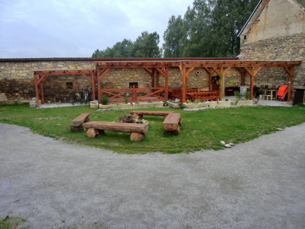K dispozici je slunný dvůr s pergolou, parketem, grilem a ohništěm. Na druhé straně domu můžete relaxovat na prostorné a klidné zahradě. Cesta za penzionem vede podél říčky rovnou do romantického lesa. Zastavit se můžete u vodního kola s vodníkem, který potěší po cestě nejen malé děti.