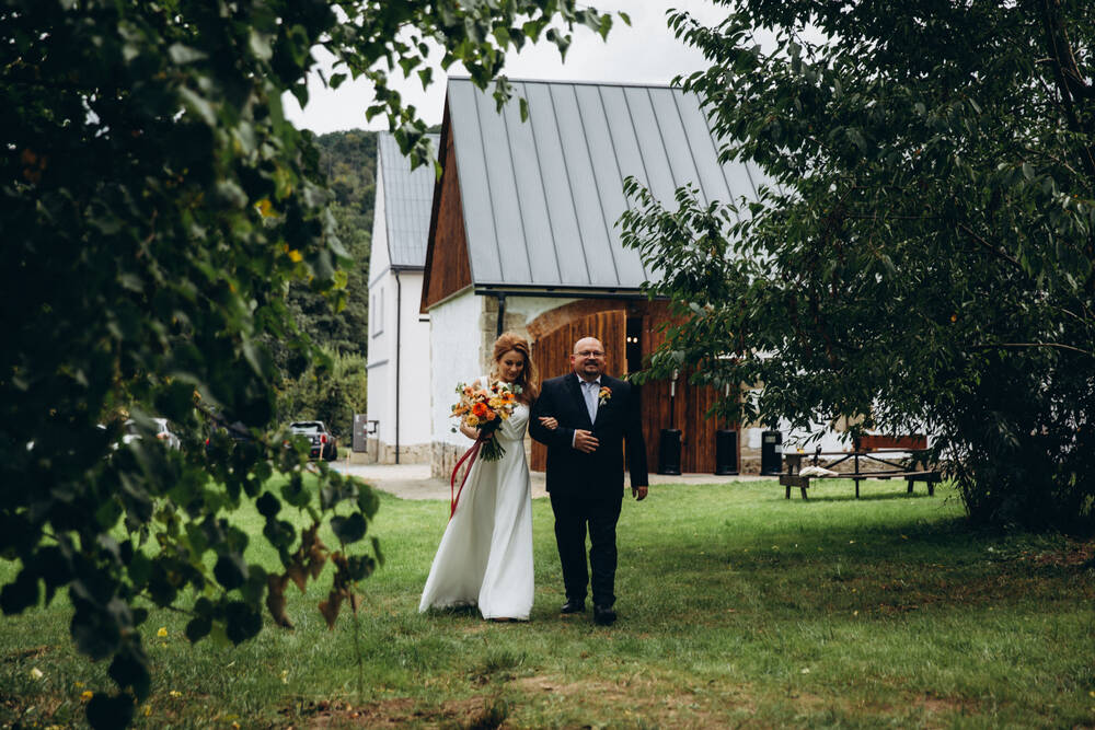 Celé místo dýchá historií, což nám poskytlo jedinečný zážitek. Obřad na louce za stodolou byl kouzelný – louka je zcela odtržena od vesnice a je obklopena stromy. Ráno před obřadem jsme tu dokonce zahlédli srnky. Bylo jen na nás, zda obřad uděláme na zahradě, uvnitř či na louce. Louka se ale navíc nachází přímo za stodolou a tak nebylo potřeba se nikam přesouvat.