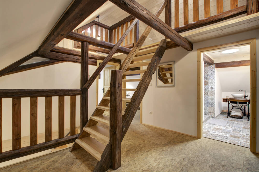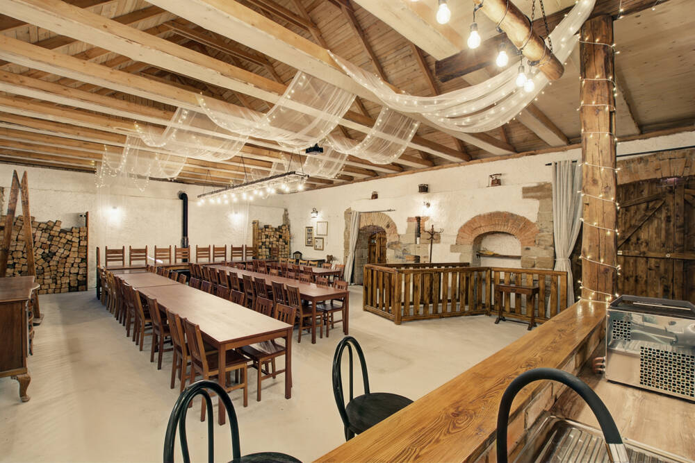 Stodola, vybavená barem a galerií, je ideální pro společenské akce a pohodlně pojme až 70 hostů.