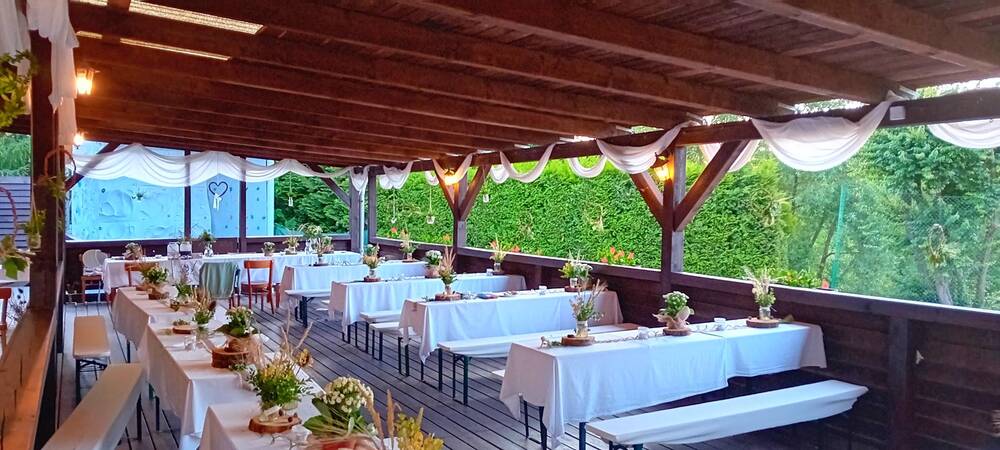 Venkovní zastřešená terasa až 120 míst