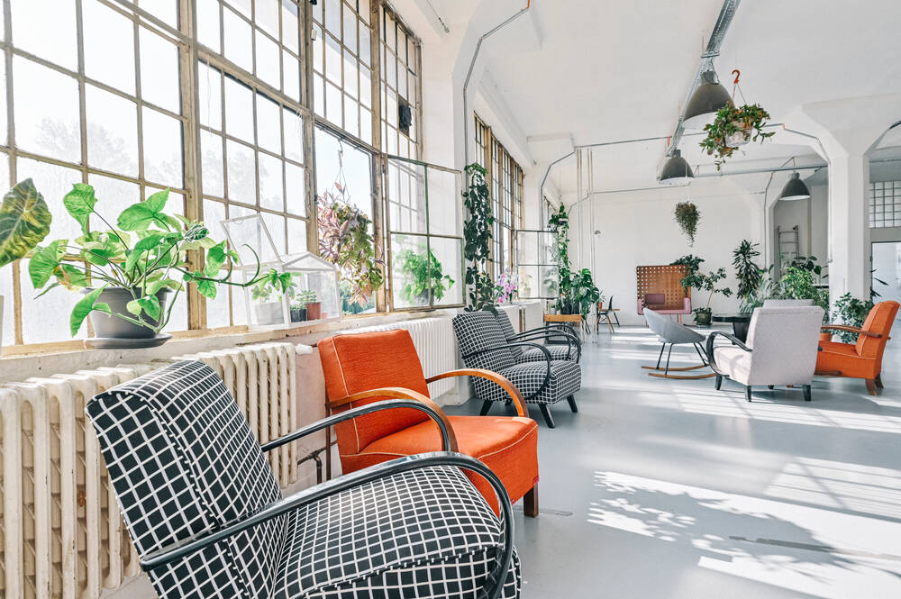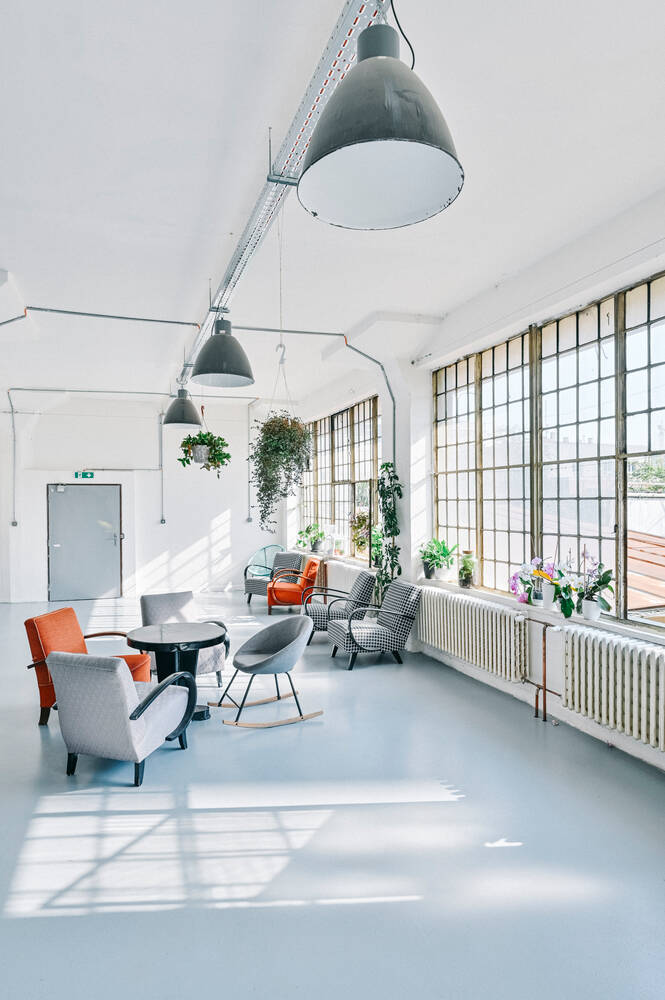 Menší industriální prostor vhodný pro různé typy akcí. Najdete zde vintage nábytek, tabulková okna a ikonické sloupy.