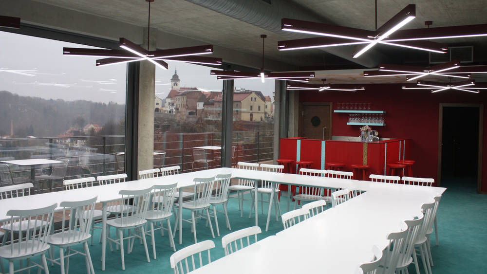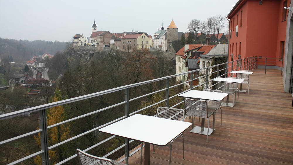 Potřebujete zařídit firemní akci, seminář nebo konferenci? Hotelový salonek plně vybavený audiovizuální technikou je Vám zcela k dispozici. Příjemné prostředí konferenčního sálu, který je navíc vybaven hotelovým barem, který se postará o vaše občerstvení a vyhlídkovou terasou, kde je možné se provětrat a odpočinout mezi pracovními a studijními úkoly, nebo přednáškami. Ze sálu a terasy je opět nádherný výhled do přírody a na historickou část města a pokud by vás výhled, nebo sluníčko snad rušili celý sál lze zatemnit elektrickými venkovními žaluziemi. Salonek nabízí dle uspořádání stolu 30 – 40 míst k sezení.