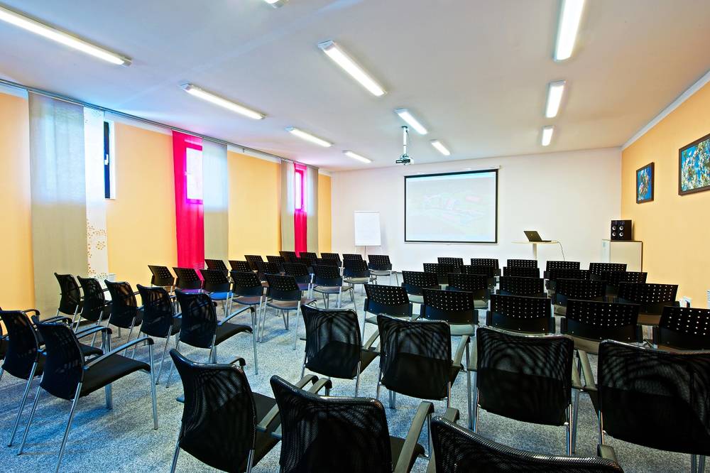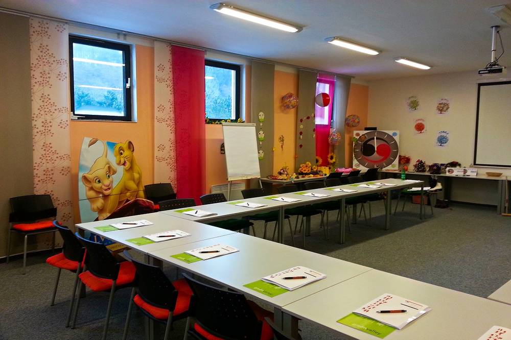 Nově zrekonstruovaný prostor školicí místnosti, která je umístěna v samostatné budově nedaleko velké pergoly. Možnost zatemnění a vybavení prezentační technikou, s prostorem pro coffee break a vlastním WC.