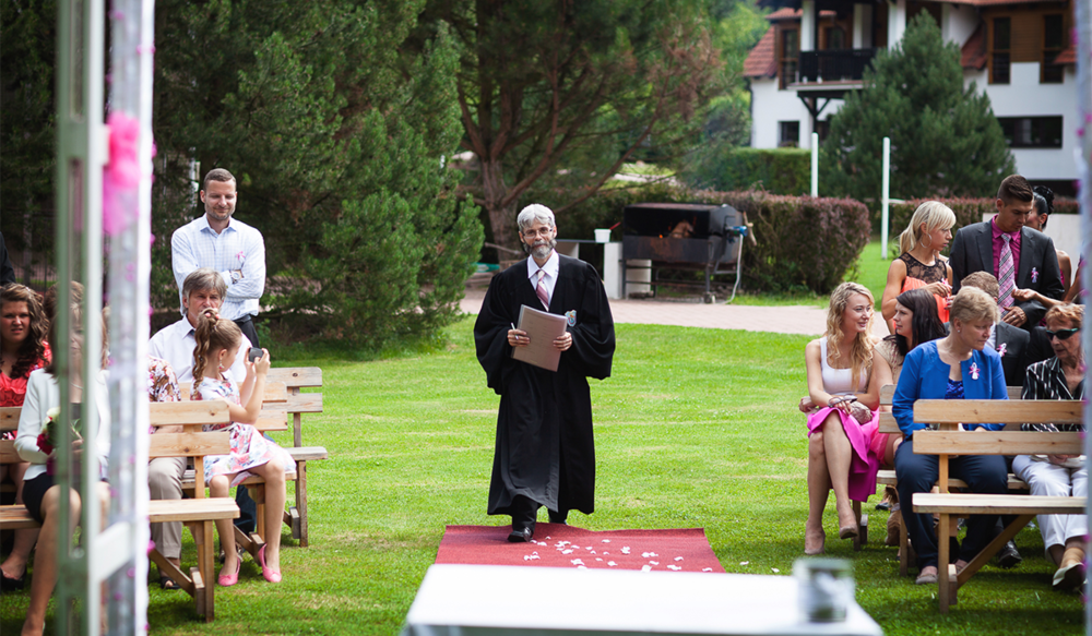 Náš resort je vhodný pro obřady a pod širým nebem, pro malé i velké svatební hostiny, pro hostiny formou banketu nebo uvolněné zahradní party v přírodě, v restauraci nebo u venkovního bazénu. Oddat se můžete na travnatých plochách, pod romanticky vyzdobeným přístřeškem malé pergoly, ale i v brance našeho fotbalového hřiště.