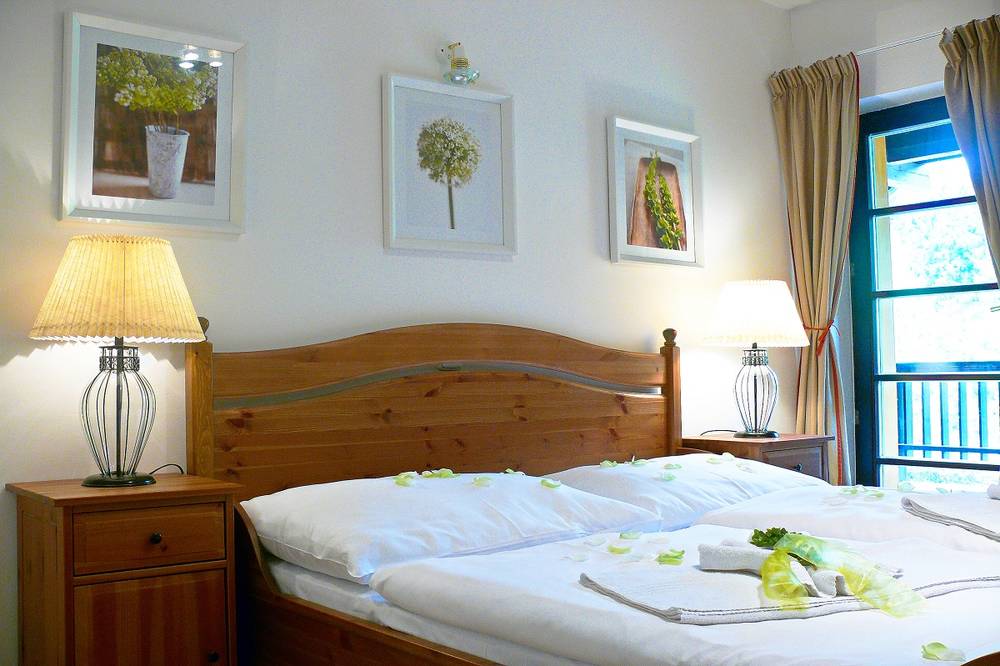 Pro tradiční první svatební noc je připraven novomanželům apartmán s květinovou výzdobou a lahví sektu. Ubytování pro svatební hosty je ve dvoulůžkových pokojích s pevnou přistýlkou, apartmánu nebo v letních měsících prostší tábornická varianta v našich stanech s podsadou, případně velkém společném prostoru se sociálním zařízením.