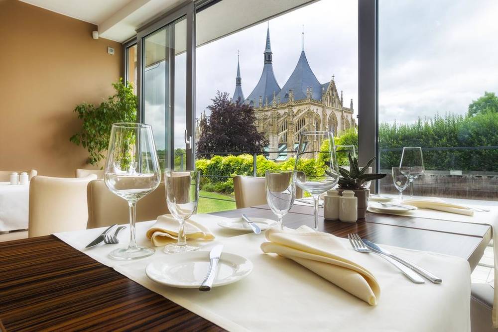 Atmosféra příjemného posezení v restauraci je díky přímému výhledu na chrám sv. Barbory pro naše hosty nevšední a nezapomenutelná. Hosté mohou využít bezprostředního vstupu do areálu chrámu i do přilehlé jezuitské koleje. Ti, kteří využijí možnost ubytování, mohou obdivovat chrám sv. Barbory i ze soukromí svých pokojů.