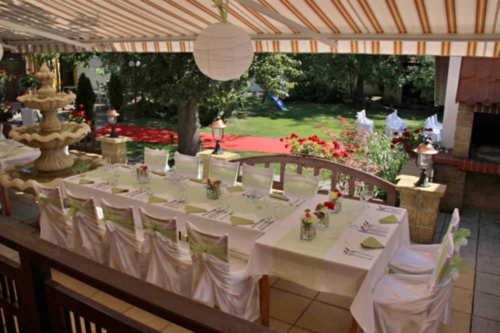 Restaurace a penzion U Němců nabízí to pravé místo pro vaši nezapomenutelnou svatbu. Klidné prostředí, rodinná atmosféra, osobní přístup a poctivé služby – to je záruka obřadu i svatební hostiny v blízkosti Brna, o jakých jste léta snili. Svatební obřad pro vás připravíme v naší uzavřené romantické zahradě ve venkovském stylu nebo v přilehlém kostelíku.