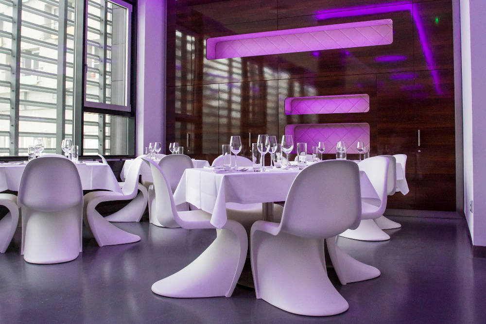 Je vybaven hudební aparaturou, projekcí na 4,5 m půlkulatou stěnu, světelnými efekty, laserem. Prostor je rozdělen na obědovou část, neformální část s koženými sedačkami, salonkem a kuřáckou zónou. Pro zabavení těch nejmenších je zde možnost dětského koutku.