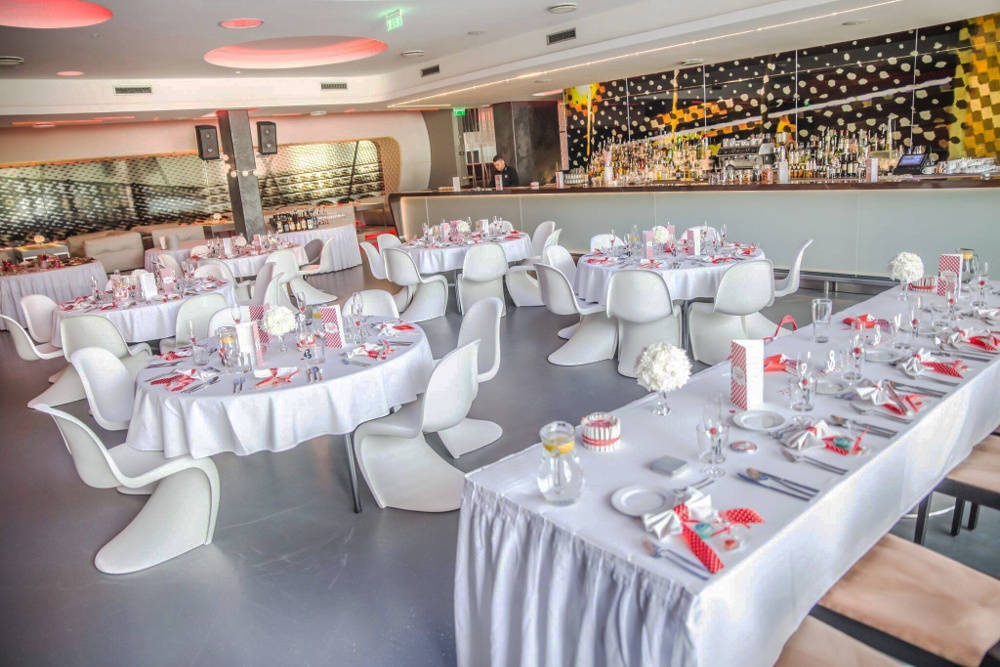 Krásný a moderní interiér v prvním patře se salonkem a bowlingem, který je ideální pro Vaši svatbu v celoročním období.