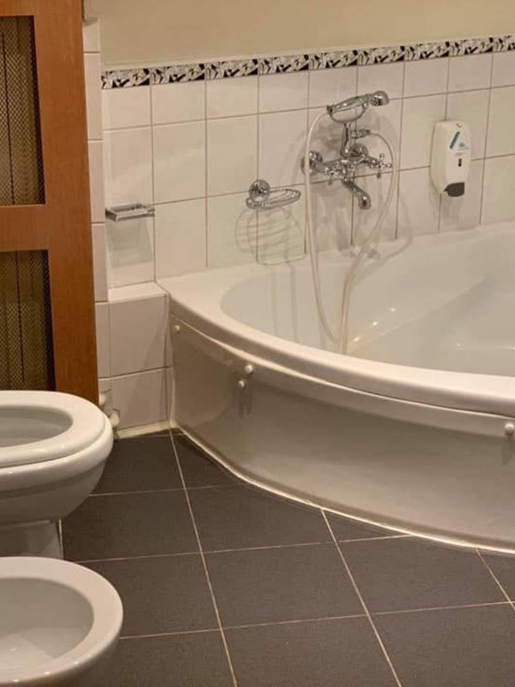 Pokoj č.1 - junior suite – dvoulůžkový pokoj s TV + obytný pokoj s rozkládací sedací soupravou pro 1-2 osoby s TV – koupelna s vanou, umyvadlem, bidetem a WC.