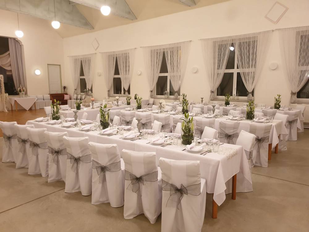 Svatby, oslavy a další zážitky.. Plesy, večírky, eventy různého typu a spoustu dalších aktivit můžete realizovat právě u nás! Dle požadavku zajistíme vše od A do Z, či Vám jen poskytneme prostory. Jsme otevřeni různým variantám spolupráce. Hlavní sál disponuje kapacitou 200 osob na sezení u stolu, s možností využití podia až pro 20 hudebníků, rautového salonku/šatny a venkovní terasy. Malý salonek je vhodný pro akce do 25 osob, s vlastní terasou, kdy stále zůstává volný prostor kavárny pro doprovodné aktivity. Brzy nabídneme i ubytovací kapacitu přímo v místě.