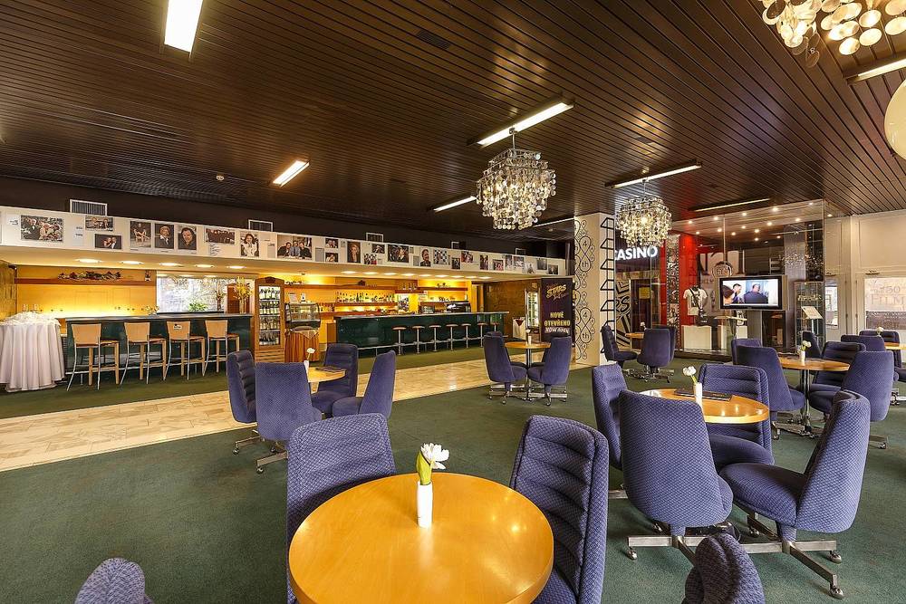 Snídaně, obědy a večeře servírujeme v hotelové restauraci formou výběru z bufetových stolů. Část restaurace prochází do prostorné terasy s výhledem do centra Karlových Varů. Vedle hotelové recepce je k dispozici lobby bar "FILM CAFÉ" s nabídkou teplých a studených nápojů a lehkého občerstvení.