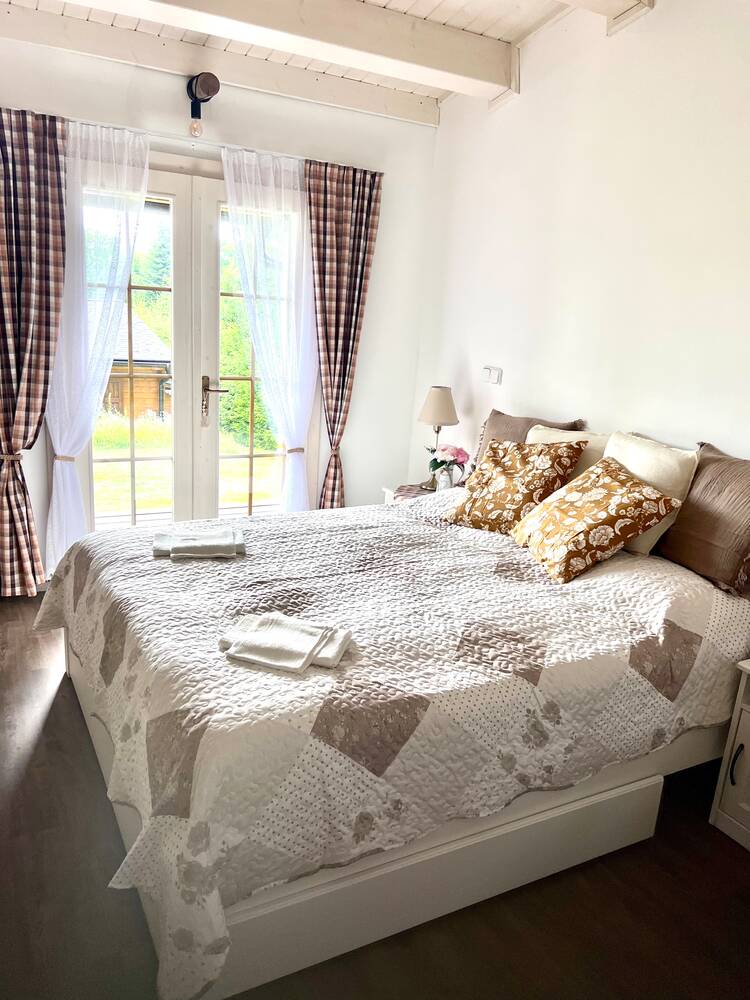 Kapacita: až 12 osob, komfortně ve 3 dvoulůžkových pokojích a jednom pokoji pro čtyři + 2 přistýlky.