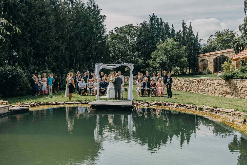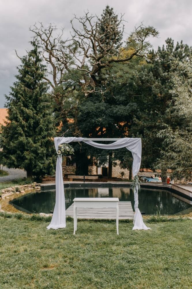 K pronájmu na svatby nabízíme celý areál statku. Na jednom místě můžete mít svatební obřad, svatební hostinu a také ubytování pro část hostů (v osmi dvoulůžkových pokojích). Areál zahrady má rozlohu asi 3000 m2 a ze všech stran je od okolního světa oddělen zdmi nebo stromy, takže poskytuje naprosté soukromí. Pro svatební hostinu jsou k dispozici tři prostory, záleží na počtu hostů i na počasí. U nás se může konat svatba pro 20 i pro 150 hostů. Svatební obřad se může konat na zahradě i uvnitř.