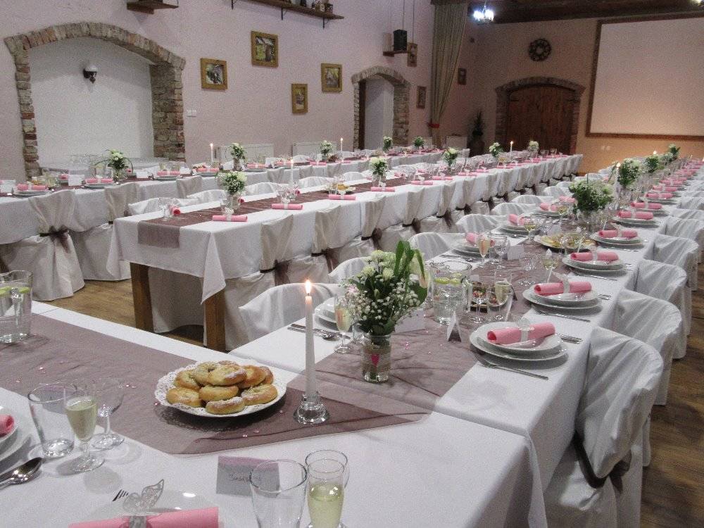 Jednou z hlavních domén naší restaurace je pořádání svateb. Jsme schopni uspokojit jakkoli náročné svatebčany a novomanžele. Našim cílem je, aby se Váš svatební den, díky nám stal krásnou vzpomínkou na celý život, kyticí příjemných okamžiků a skvělých zážitků.