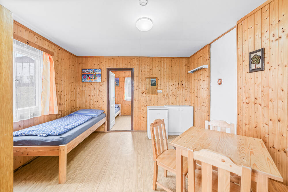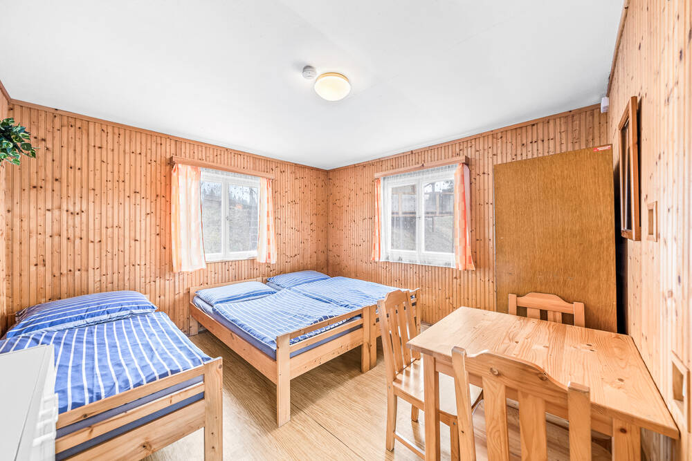 V rekreačním objektu jenom kousek od břehů Hracholuské přehrady je Vám k dispozici 7 pokojů (1x 5 lůžek, 4x 4 lůžka, 1x 3 lůžka a 1x 2 lůžka) celkem až pro 26 osob. V přízemí chaty se nachází zvenku přístupná plně vybavená společná kuchyň se společenskou místností s televizí a sociální zařízení. Pro sportovce je u nás připraveno travnaté hřiště o rozměrech 15 x 35 m. Před chatou najdete rozlehlé venkovní posezení a za ní pak ohniště s lavičkami a grill. Samozřejmostí je WIFI a také parkování přímo u objektu.